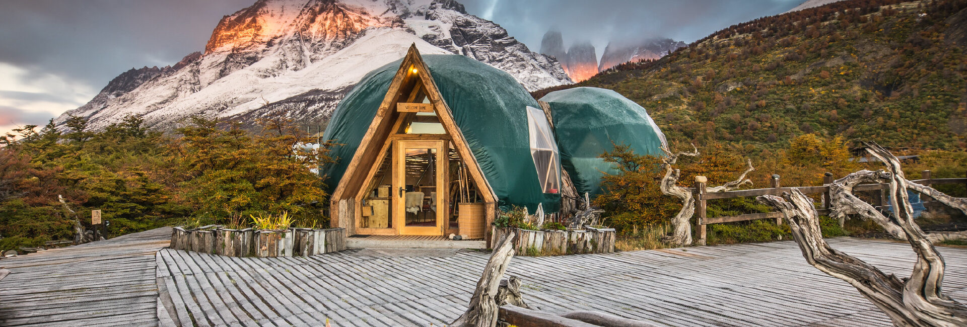 Somos el primer alojamiento geodésico sostenible del mundo, situado en el corazón del Parque Nacional Torres del Paine. Somos pioneros en sostenibilidad, operando 100% con fuentes de energía renovable y compensando todas las emisiones de carbono, contamos con 33 domos en total, con las categorías en Standard, Superior y Suite, además de un domo de Yoga y de masaje. Ofrecemos excursiones de excelencia con diferentes programas de 2 noches a 6 noches.